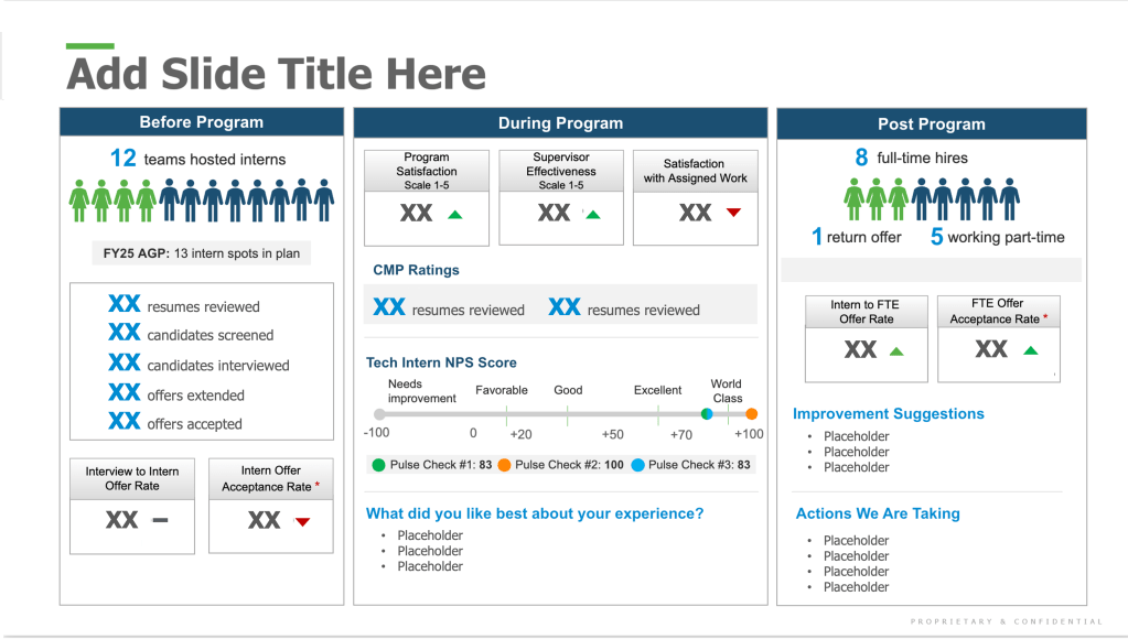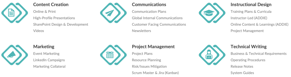 I have experience creating content for teams, leaders, executives, and board members, as well as building PowerPoint templates for the organization to use.